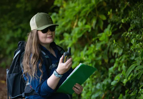 Lara Jacobs, a citizen of the Muscogee Creek Nation of Oklahoma, is researching the impact of outdoor recreation on the ecological health of Native Americans' lands. Lara is a first-year ARCS scholar working on her PhD in the College of Forestry's Forest Ecosystems and Society program at Oregon State University. The Oregon State University's Recreation Ecology lab is one of only four in the country.
